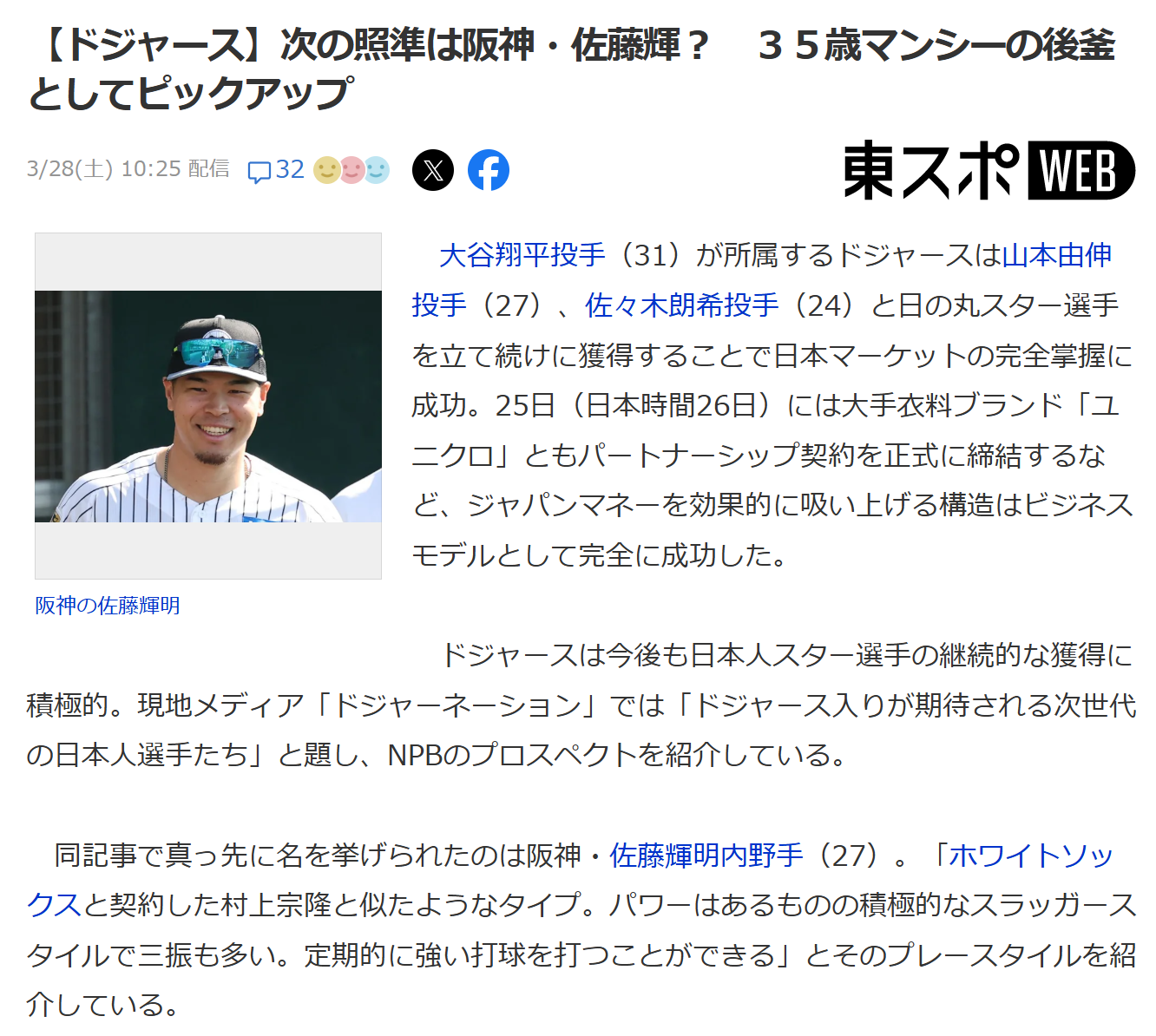 | … | 47無念Nameとしあき26/03/30(月)19:05:13No.1397464859そうだねx1 1774865113625.png-(390472 B) >この二人の活躍次第では佐藤は凄い高騰したりするのかもな |