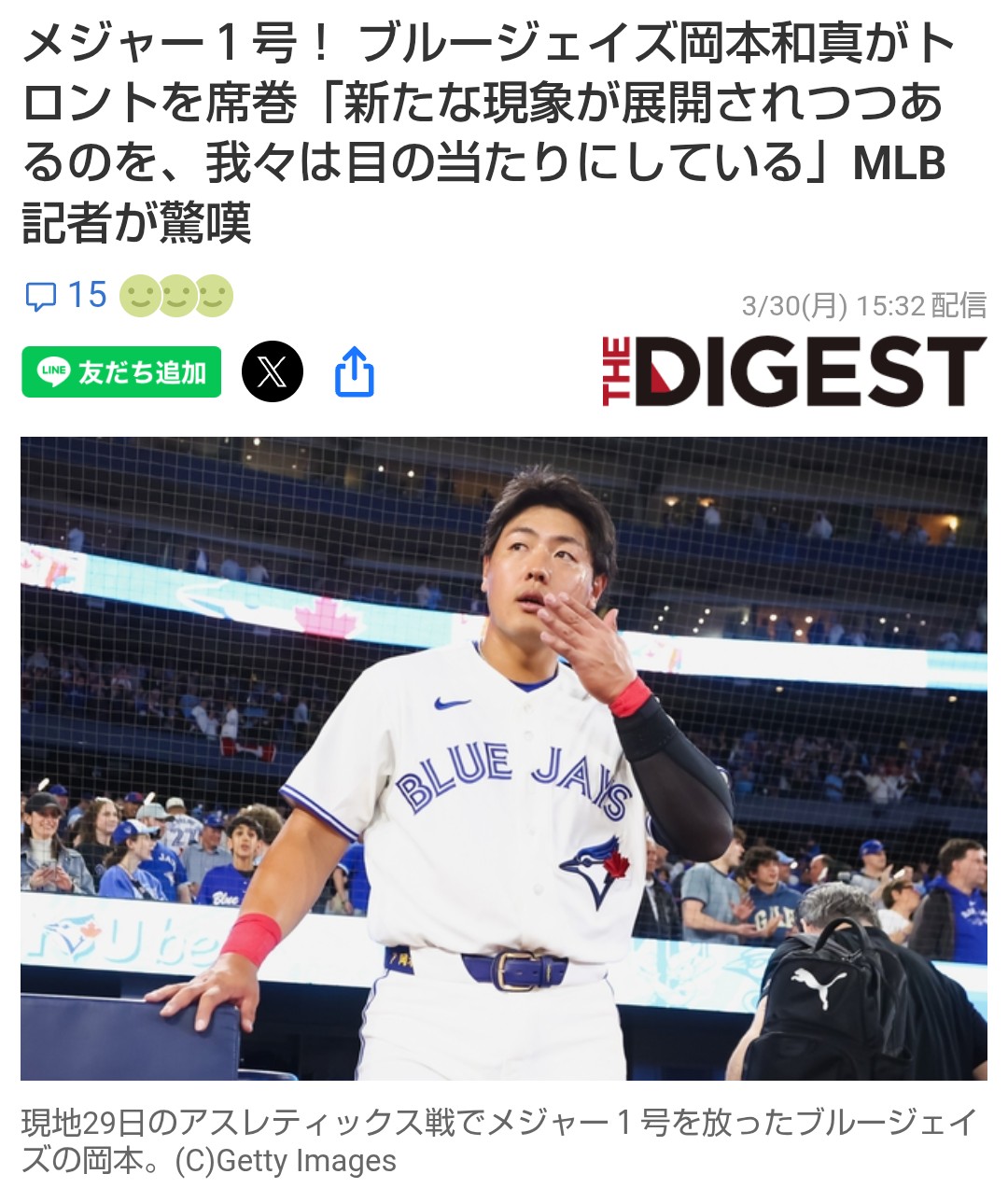 | … | 11無念Nameとしあき26/03/30(月)18:44:58No.1397460487そうだねx5ブルージェイズが楽しそうなチームでファンになりそう |