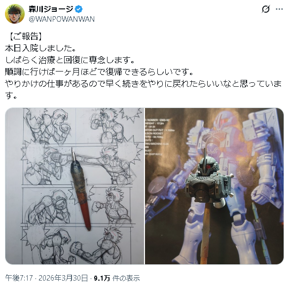 | … | 3無念Nameとしあき26/03/30(月)20:19:28No.1397484152そうだねx44原稿とガンプラを並べてるのは森川ギャグ? |