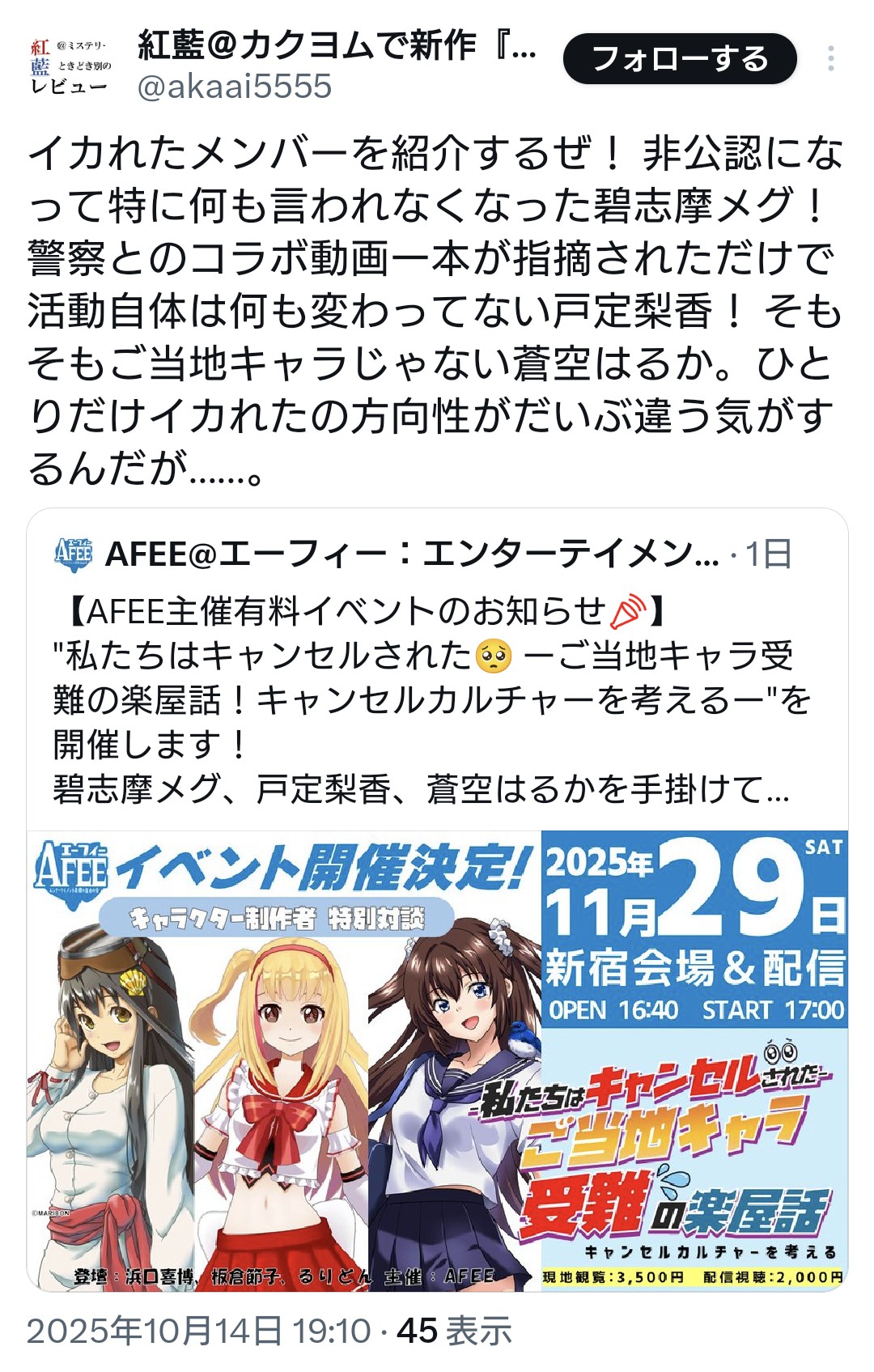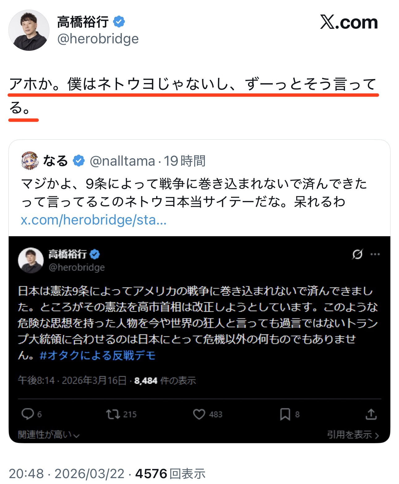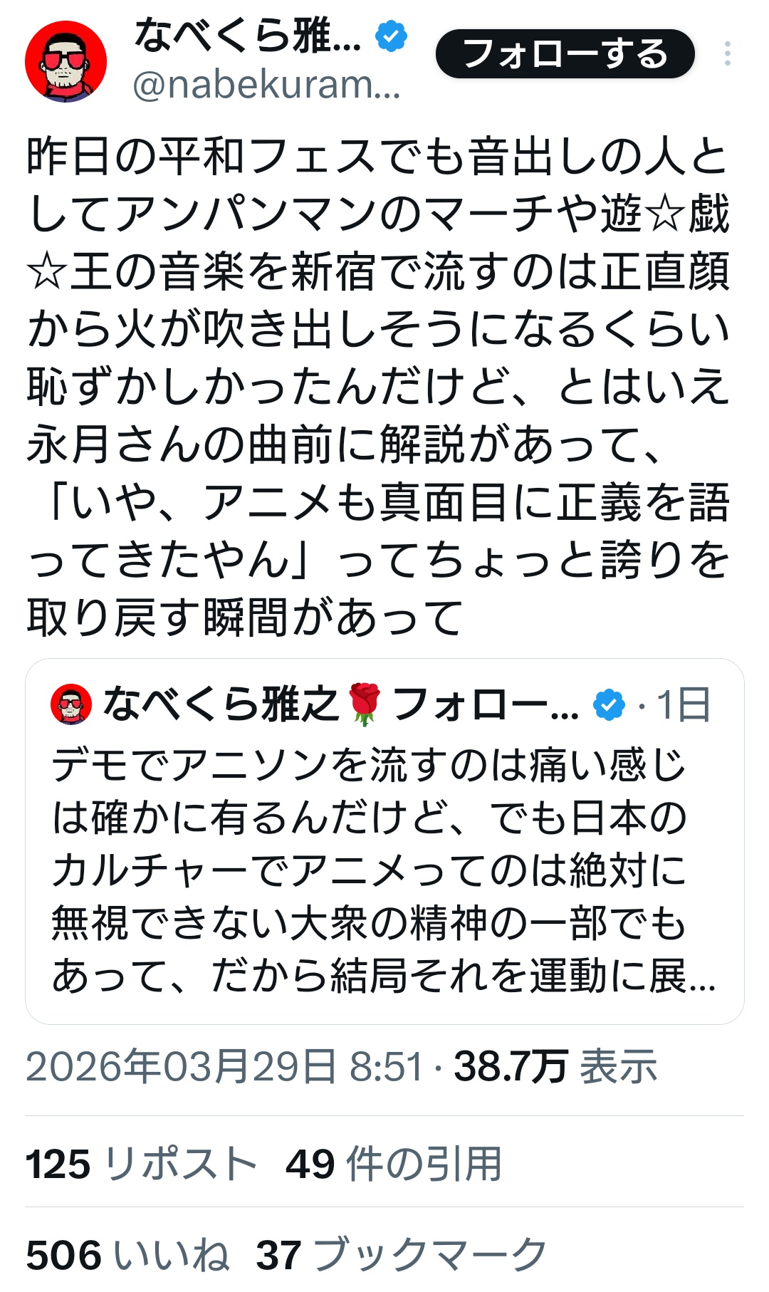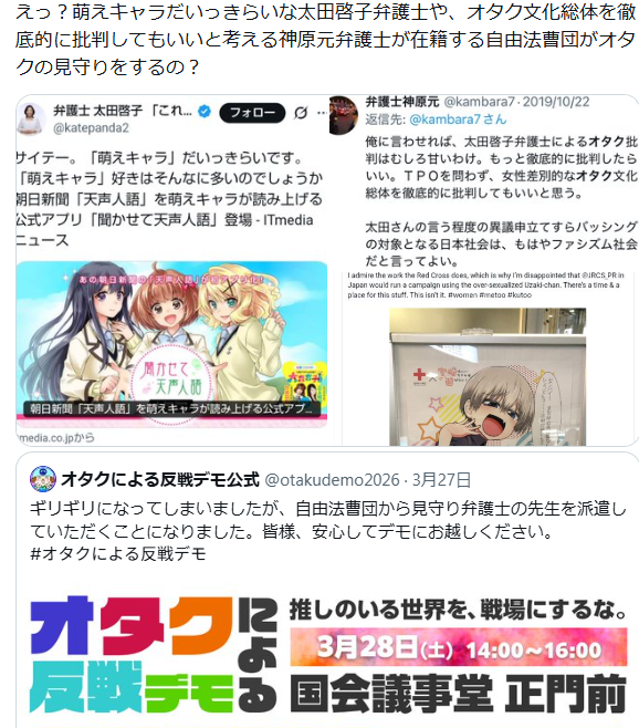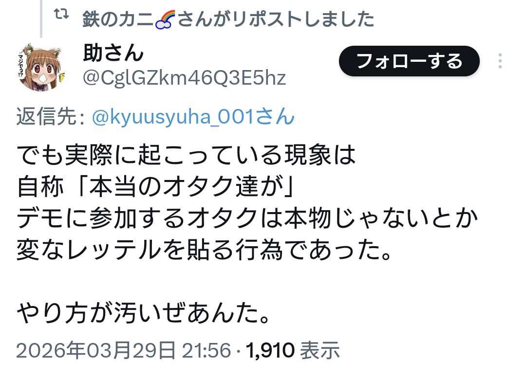 | … | 78無念Nameとしあき26/03/31(火)21:03:55No.1397717015そうだねx7>このデモにドン引きしてるオタクに対して |