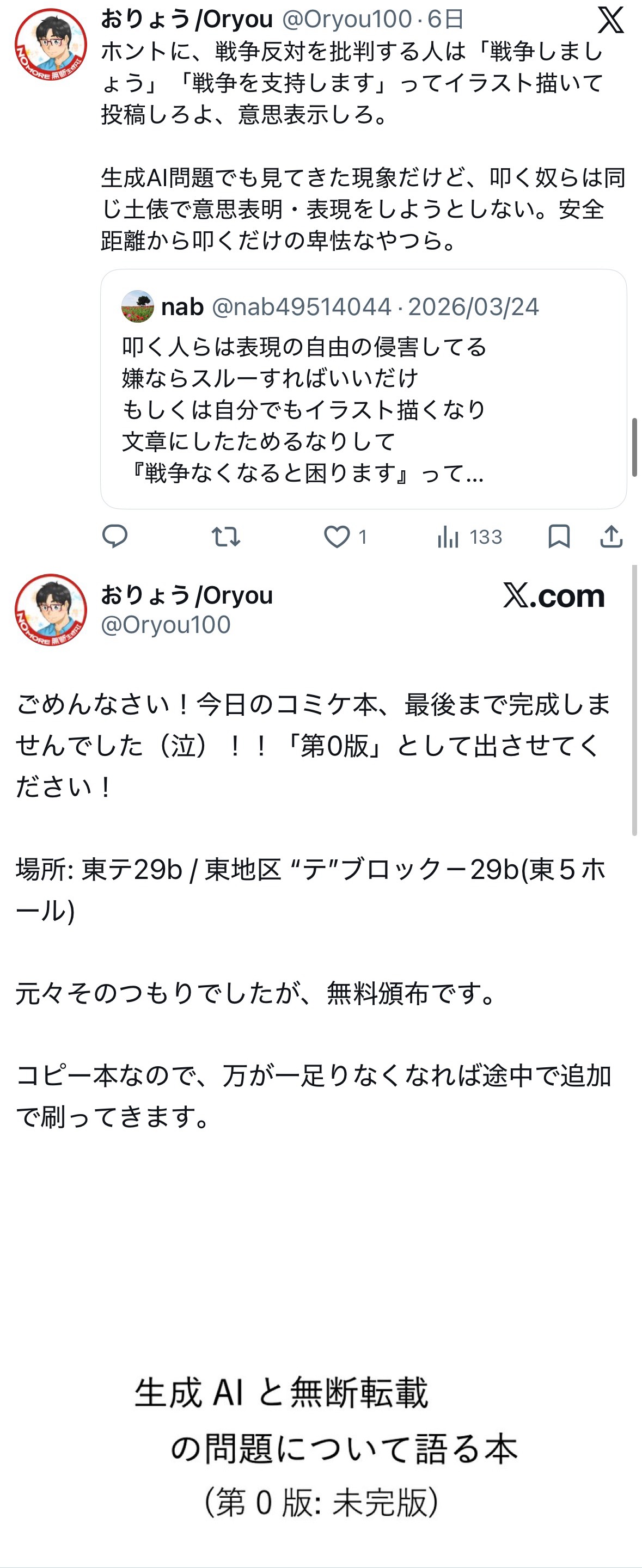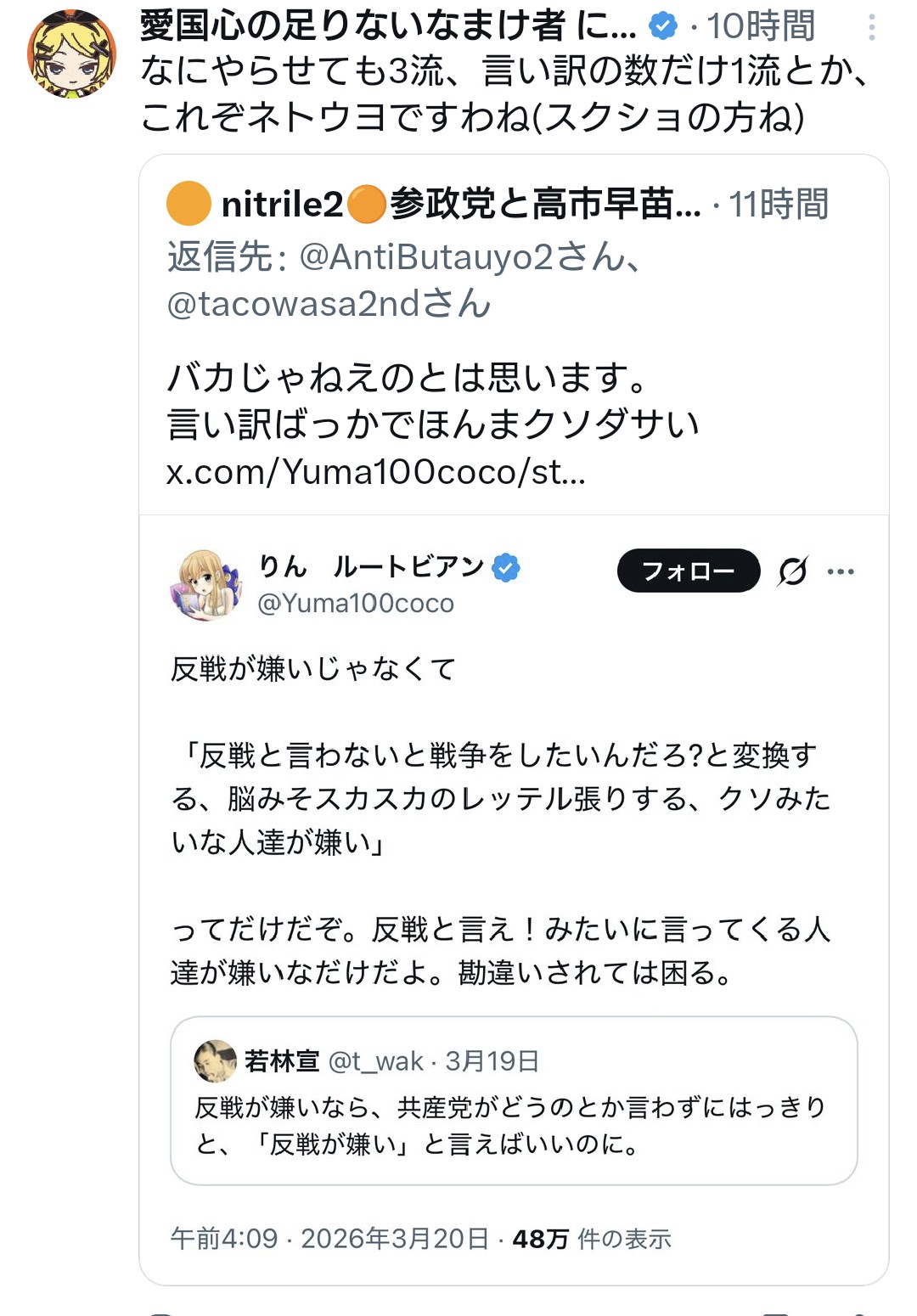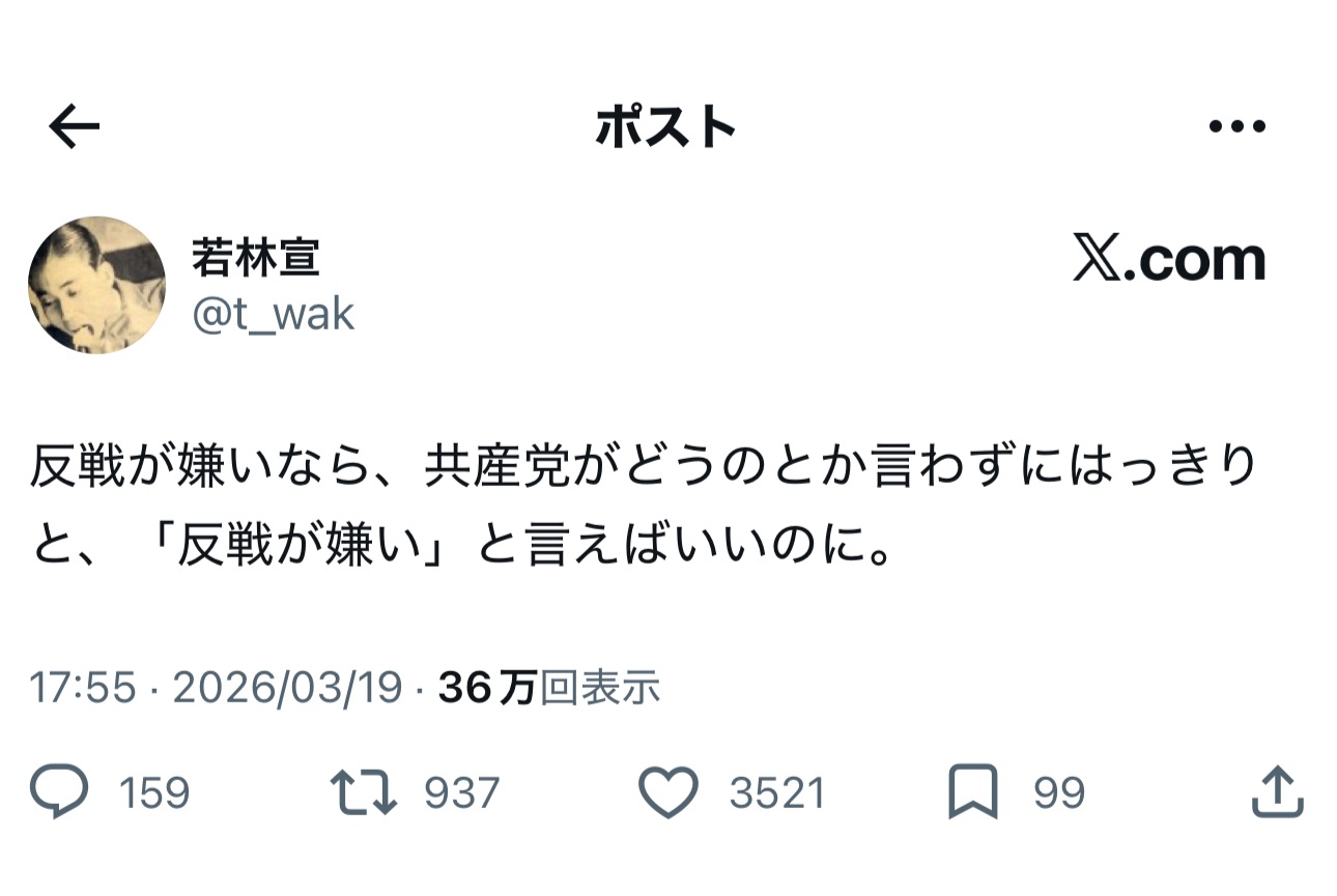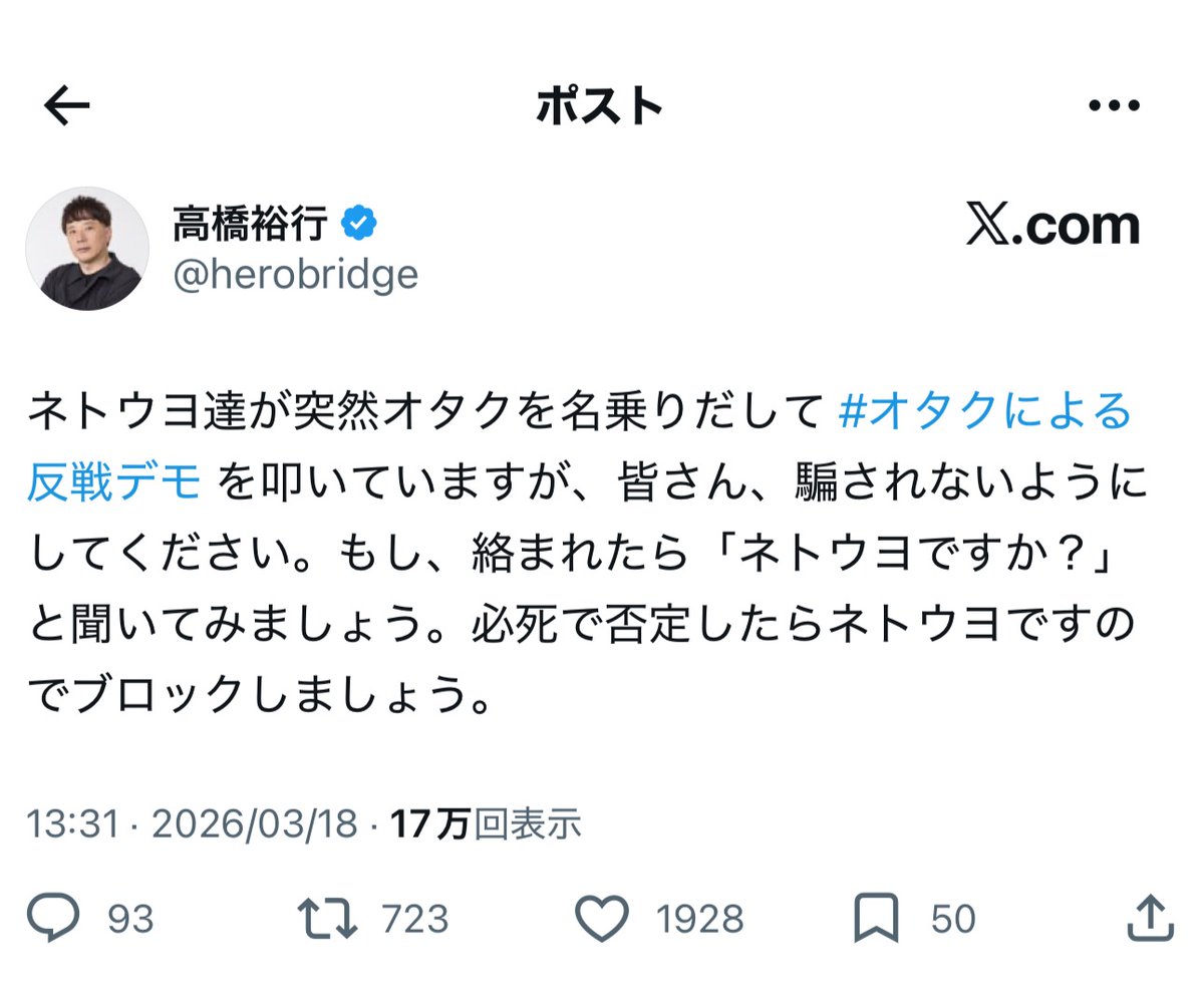| … | 964無念Nameとしあき26/03/31(火)22:25:05No.1397739825+>反戦デモに熱狂するオタクの集まりに他のオタクを呼び込もうとして滑り過ぎ |
