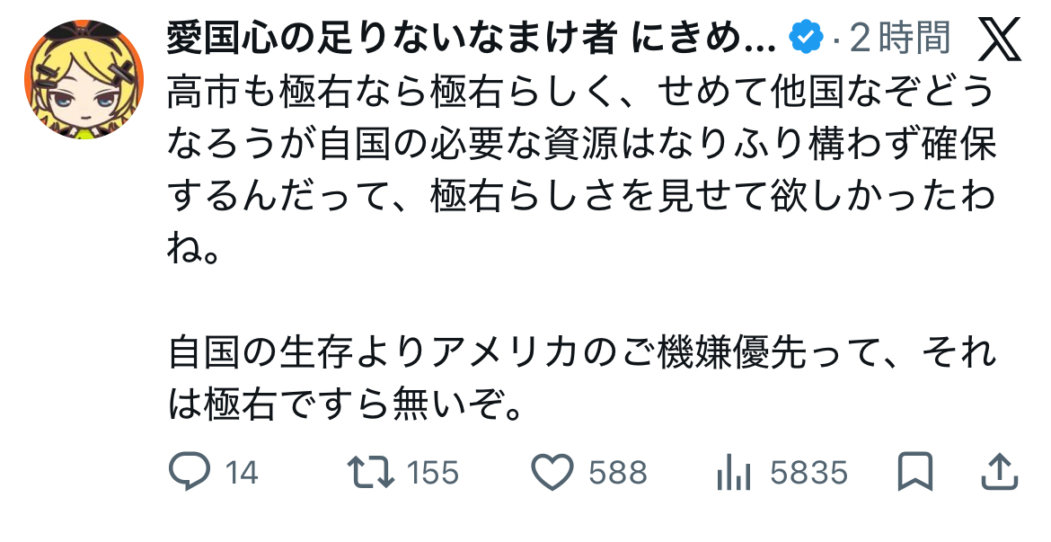 | … | 48無念Nameとしあき26/03/31(火)22:57:37No.1397747453そうだねx10>わーくにの総理はこんなのを肯定するという… |
