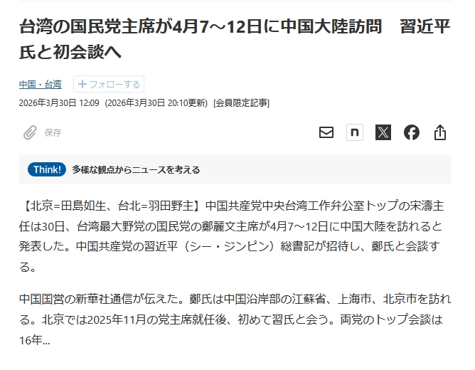 | … | 484無念Nameとしあき26/04/01(水)02:02:53No.1397776908+台湾はもう落とされる前提で動いたほうがいいよ |
