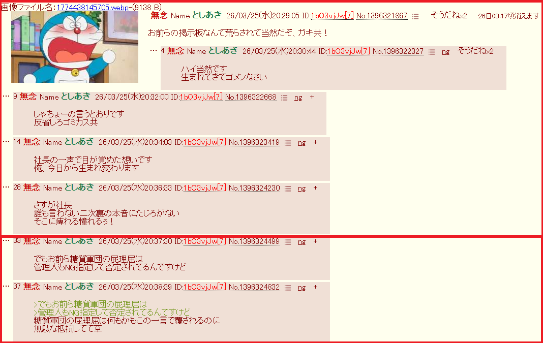 | … | 31無念Nameとしあき26/03/31(火)22:27:31No.1397740441+一回ブヒッと鳴く都度新しいクソスレを立てないで |