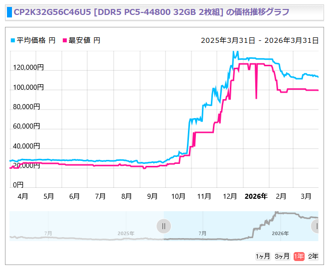 | … | 29無念Nameとしあき26/03/31(火)23:56:38No.1397759006+ 1774968998101.png-(47329 B) >メモリ価格 |