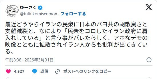 | … | 22無念Nameとしあき26/03/31(火)23:25:38No.1397753513そうだねx7ネトウヨが言うには |
