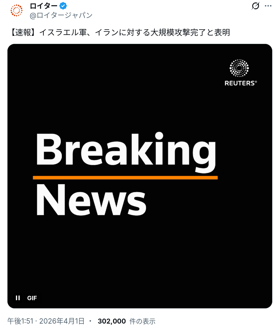 | … | 49無念Nameとしあき26/04/01(水)15:23:35No.1397863175+>イスラエルが逃げとる! |