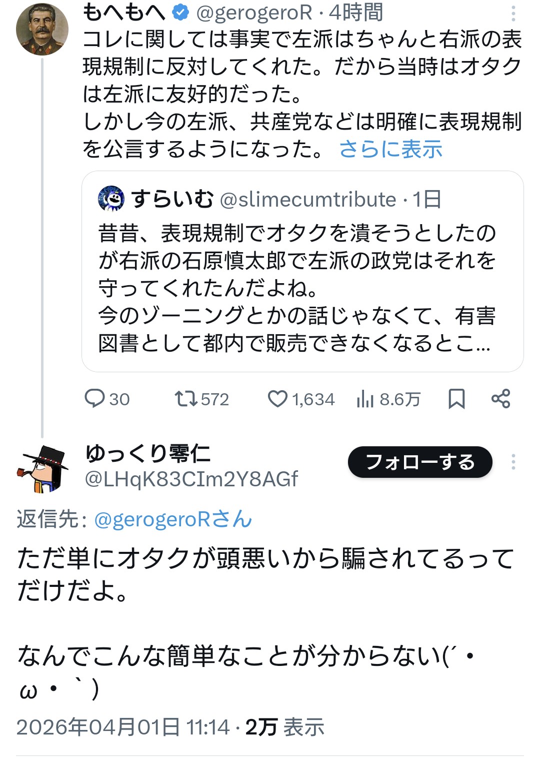 | … | 23無念Nameとしあき26/04/01(水)15:27:49No.1397863794+>この件でオタクにキレてるのがまた暴力的なやつらばかりで笑える |