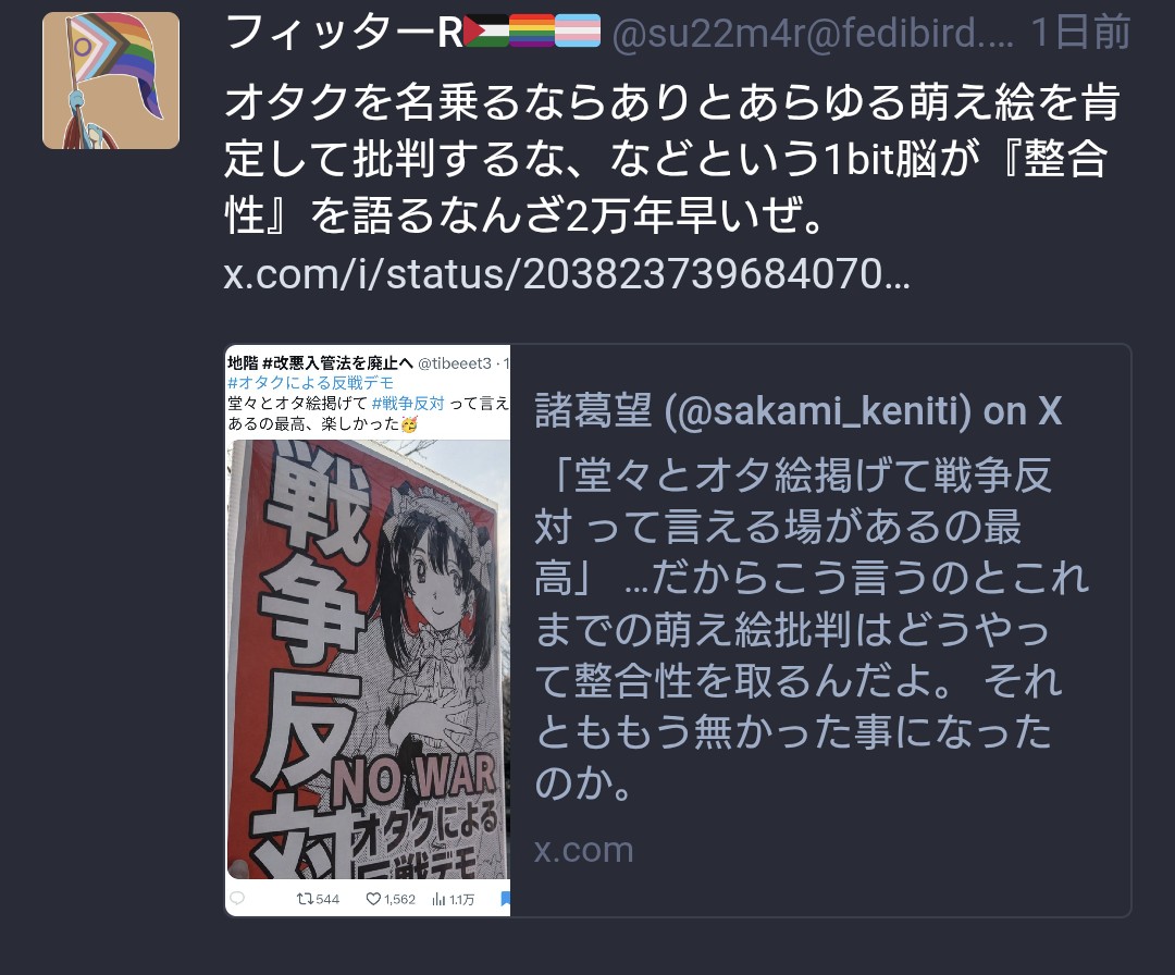 | … | 18無念Nameとしあき26/04/01(水)14:56:44No.1397859149+反戦を盾に許諾権無視するデモ |