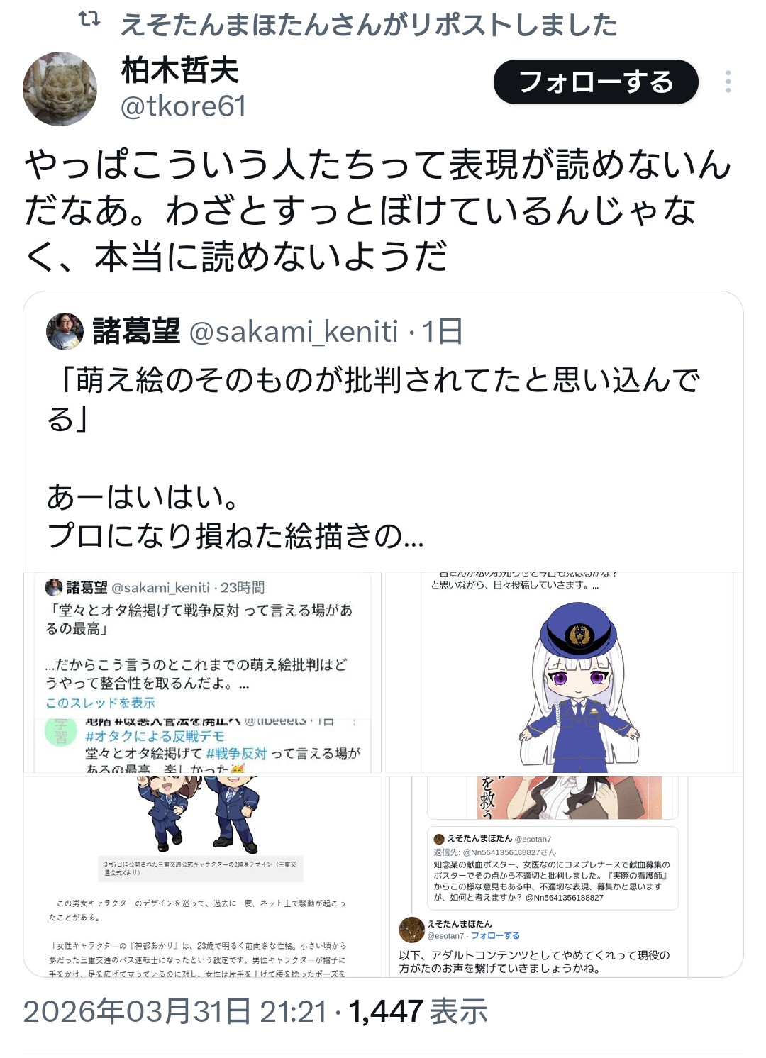| … | 11無念Nameとしあき26/04/01(水)14:40:38No.1397857035+ 1775022038043.jpg-(276137 B) >この件でオタクにキレてるのがまた暴力的なやつらばかりで笑える |