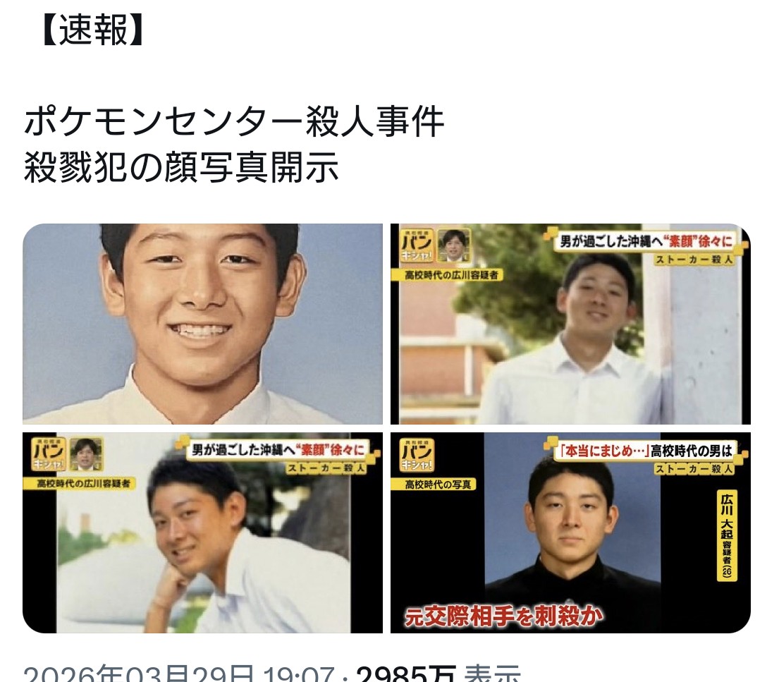 | … | 423無念Nameとしあき26/04/02(木)06:31:10No.1397993561+>Xで犯人について的外れな憶測がされてたのもセットで風化させてはいけない事件 |
