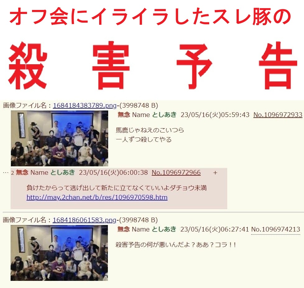 | … | 96無念Nameとしあき26/04/02(木)01:54:21No.1397984454そうだねx4ハゲデブだらけのオフ会画像を笑うだけで予告犯にされます |