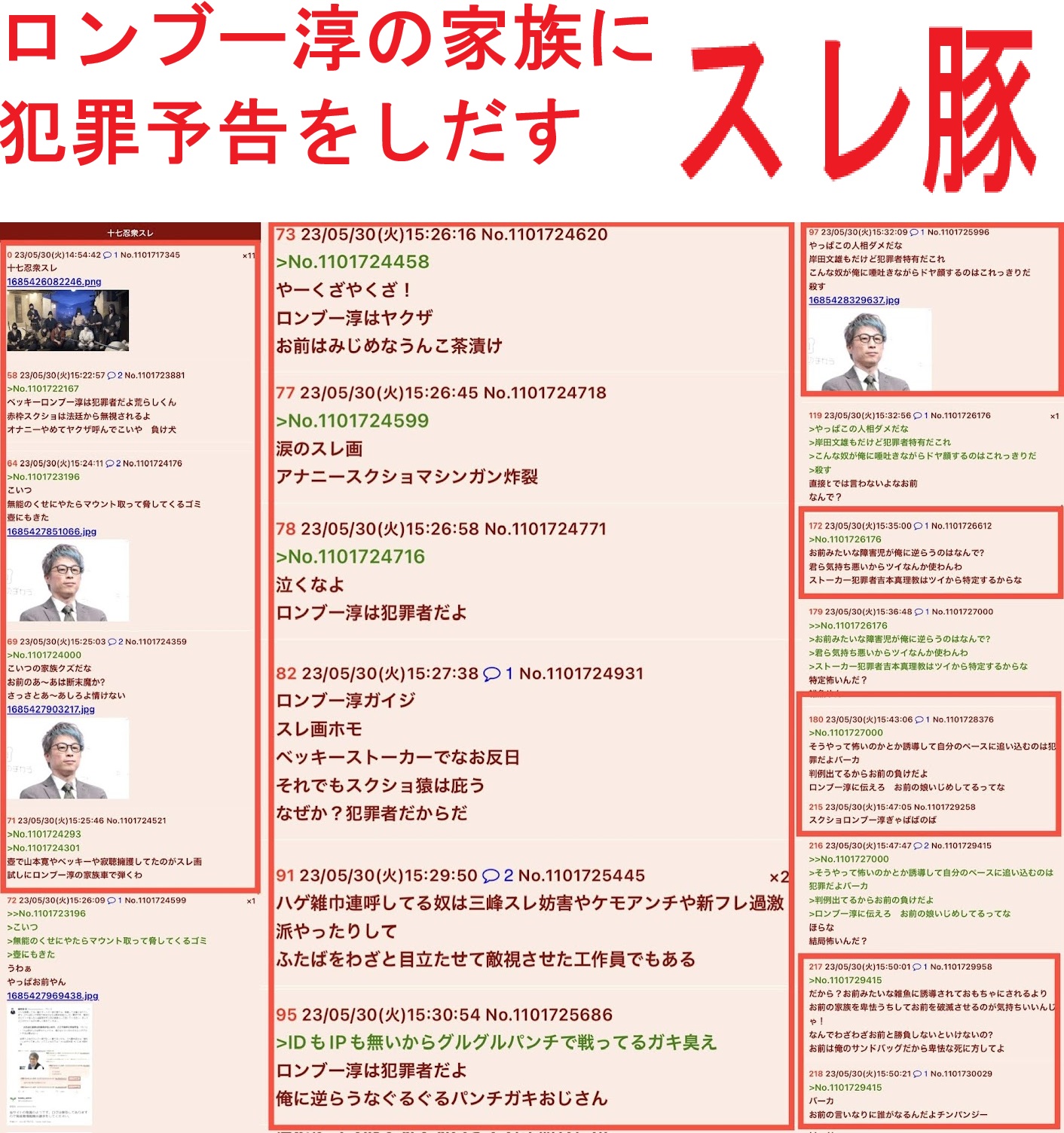 | … | 88無念Nameとしあき26/04/02(木)01:49:06No.1397984149そうだねx2>>ロンブー淳とベッキーも殺害するとか言ってたよねスレ豚 |