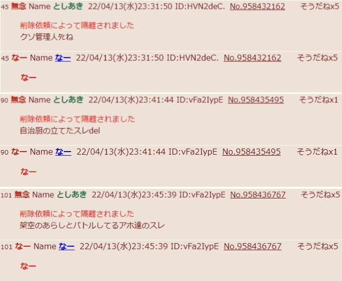 | … | 276無念Nameとしあき26/04/02(木)06:35:53No.1397993793そうだねx1>荒らしと戦ってる側のが言葉遣いとか言動が支離滅裂になりがちなのなんでなんだろう… |