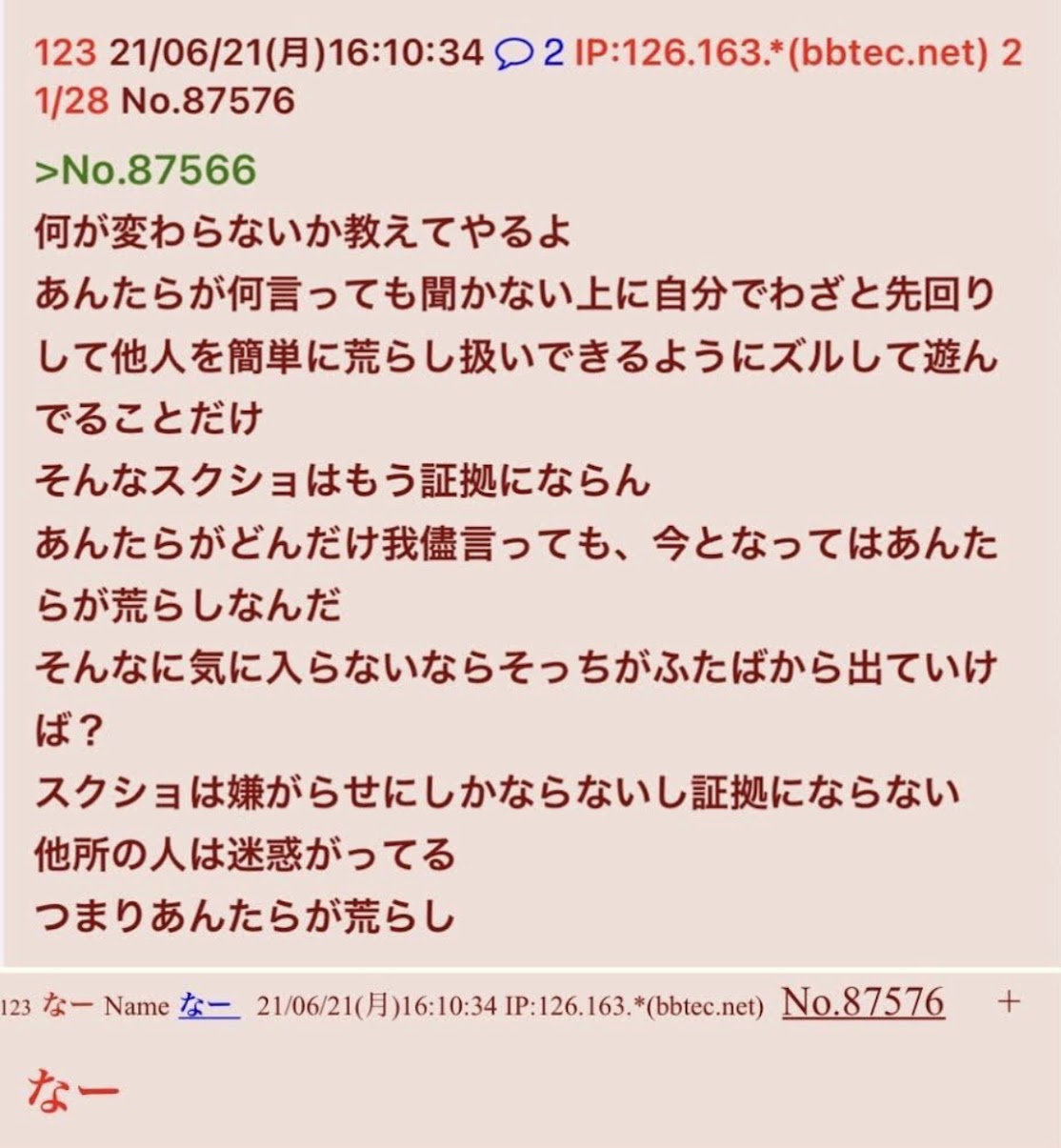 | … | 70無念Nameとしあき26/04/02(木)01:40:27No.1397983564+>>なんでディスコを追い出されたアホと文体が完全一致なんですかねぇ |