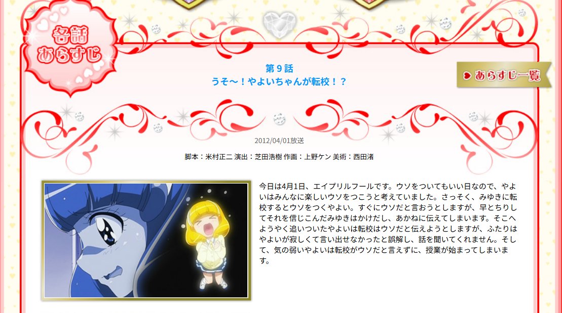 | … | 24無念Nameとしあき26/04/02(木)07:08:51No.1397995794+>プリキュアは幼児が嘘つくの良くないからかエイプリル・フールほぼスルーだったよね |