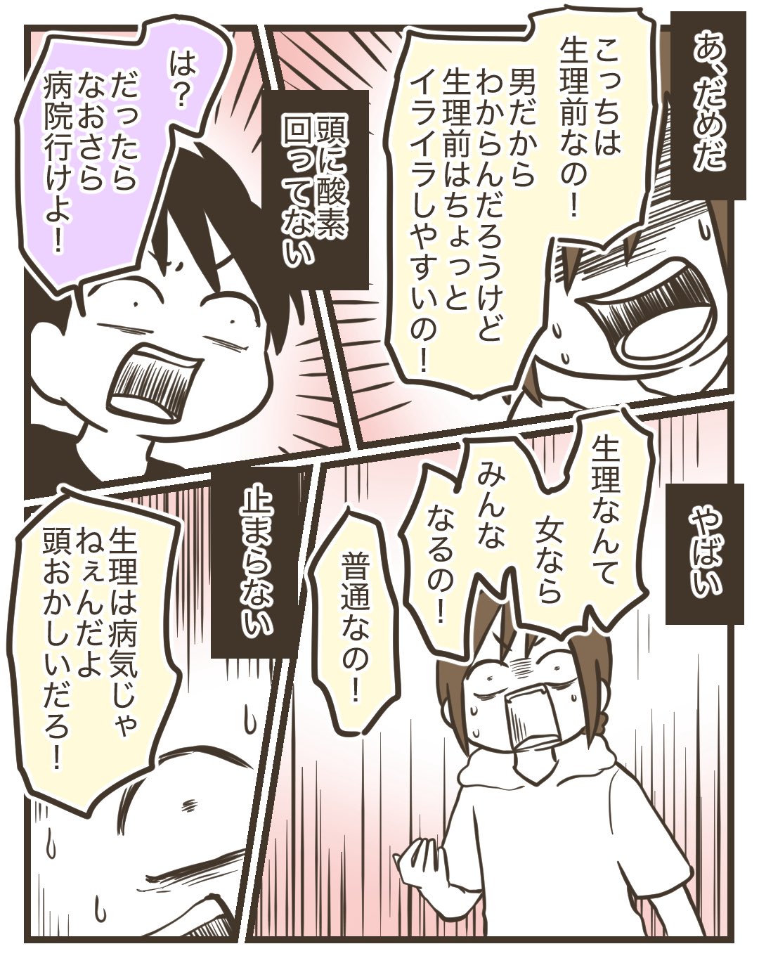 | … | 51無念Nameとしあき26/04/02(木)08:48:45No.1398004906+>「まあ生理前でイライラしてる」に対して「じゃあ病院行け」は普通にアホだろ |