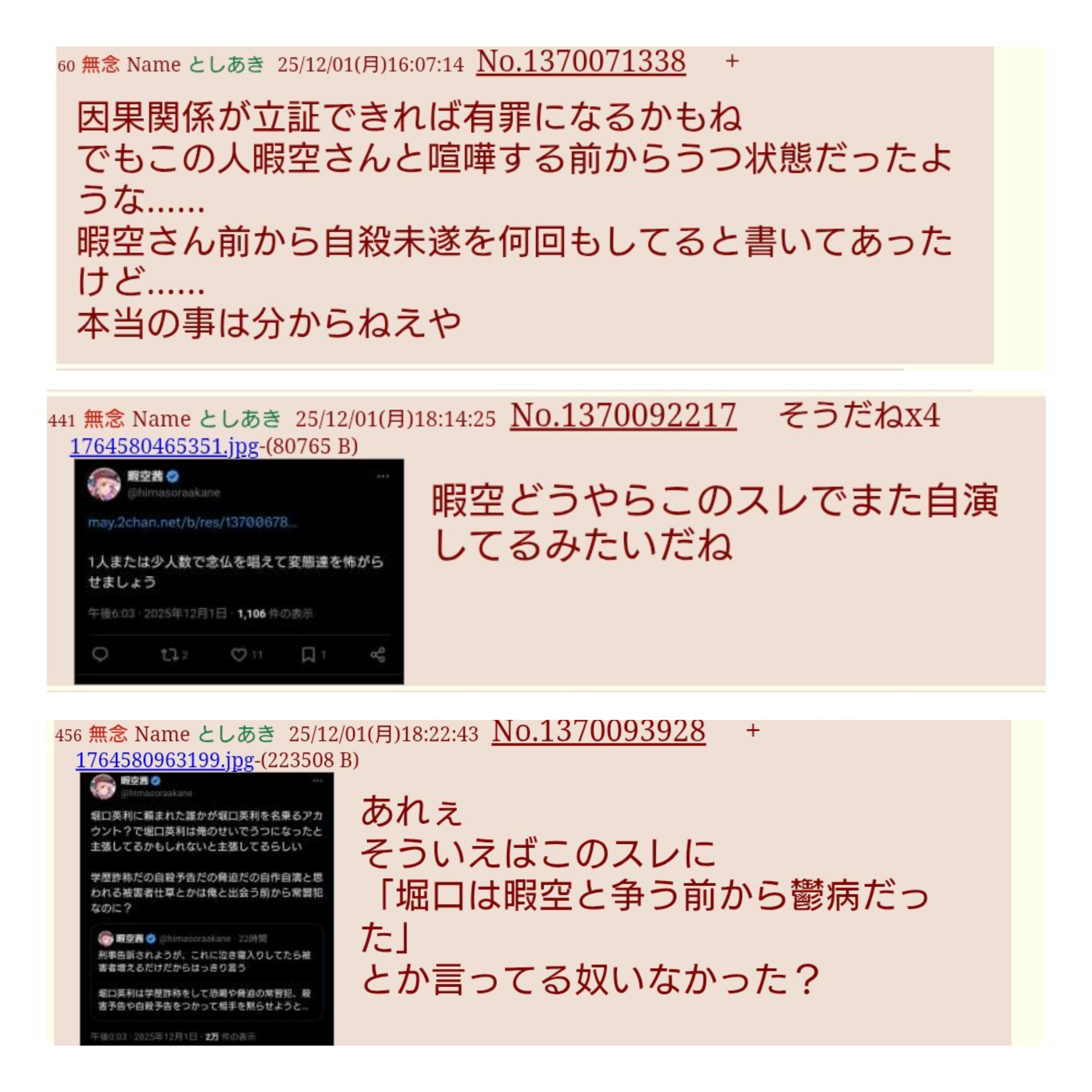 | … | 27無念Nameとしあき26/04/02(木)14:21:45 ID:dykuhDcMNo.1398056086そうだねx7 1775107305024.jpg-(2945112 B) 二次裏で暇さんとか言ってる奴は暇空本人の可能性大 |