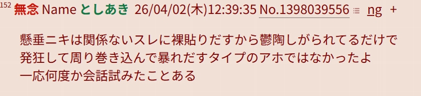 | … | 390無念Nameとしあき26/04/02(木)20:29:48No.1398124264+>バカだから指示代名詞がおかしいんだろな |