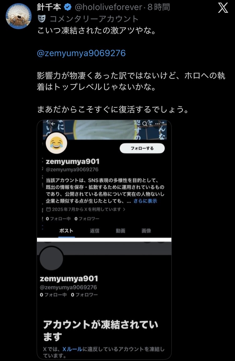 | … | 52無念Nameとしあき26/04/03(金)06:37:33No.1398203012+>なんかまたホロ粘着してたやつ凍結されたみたいやね 最近垢消しとか凍結増えてる? |