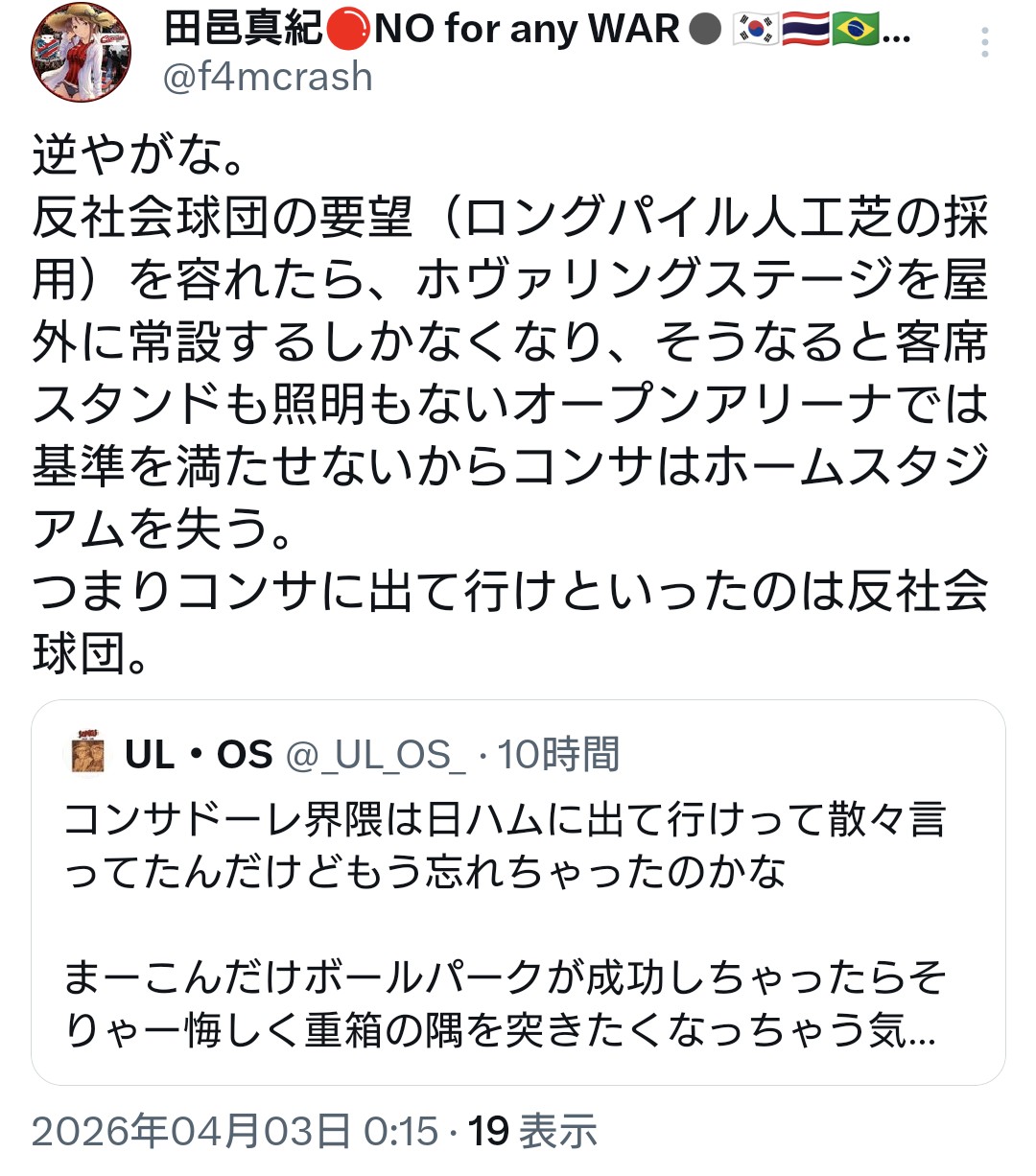 | … | 46無念Nameとしあき26/04/03(金)06:28:17No.1398202544+ 1775165297910.jpg-(235923 B) あんな反社会的球団の本拠地と軽率にコラボするような事務所がまともなわけないだら |