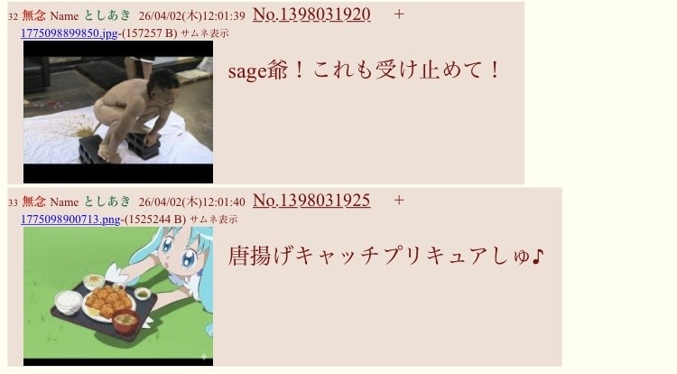 | … | 62無念Nameとしあき26/04/03(金)11:38:12No.1398233158+>👴💢💢💢sage爺教がうんことAI画像貼ってる!! |