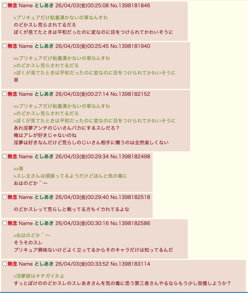 | … | 68無念Nameとしあき26/04/03(金)11:40:07No.1398233431そうだねx7のどかスレの支援者さん!?えりかスレで何やってんの!? |