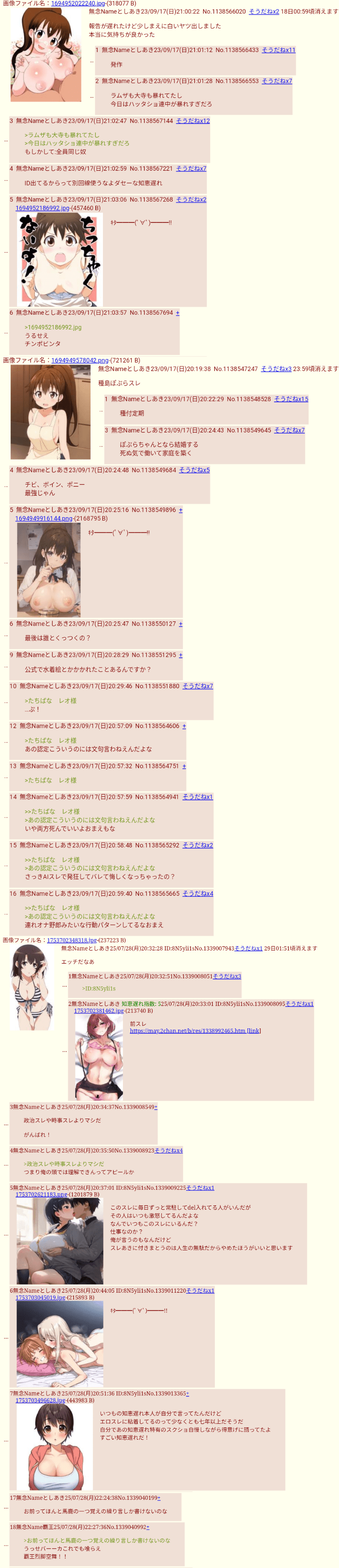 | … | 60無念Nameとしあき26/04/03(金)11:37:41No.1398233088そうだねx4>糞AIコラや💩貼ってる異常性に気がつかないsage爺教 |