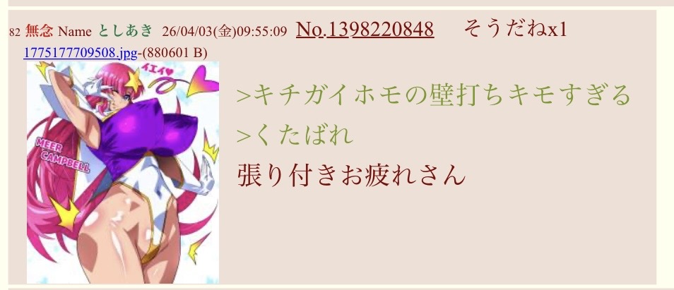 | … | 51無念Nameとしあき26/04/03(金)11:25:50No.1398231696そうだねx4>"今日"も無駄なあがきを見せる健全sage爺"教" |