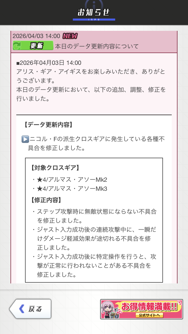 | … | 85無念Nameとしあき26/04/03(金)14:15:17No.1398257017+>ニコルの派生前クロスもカウンターが修正されたことあったっすね |