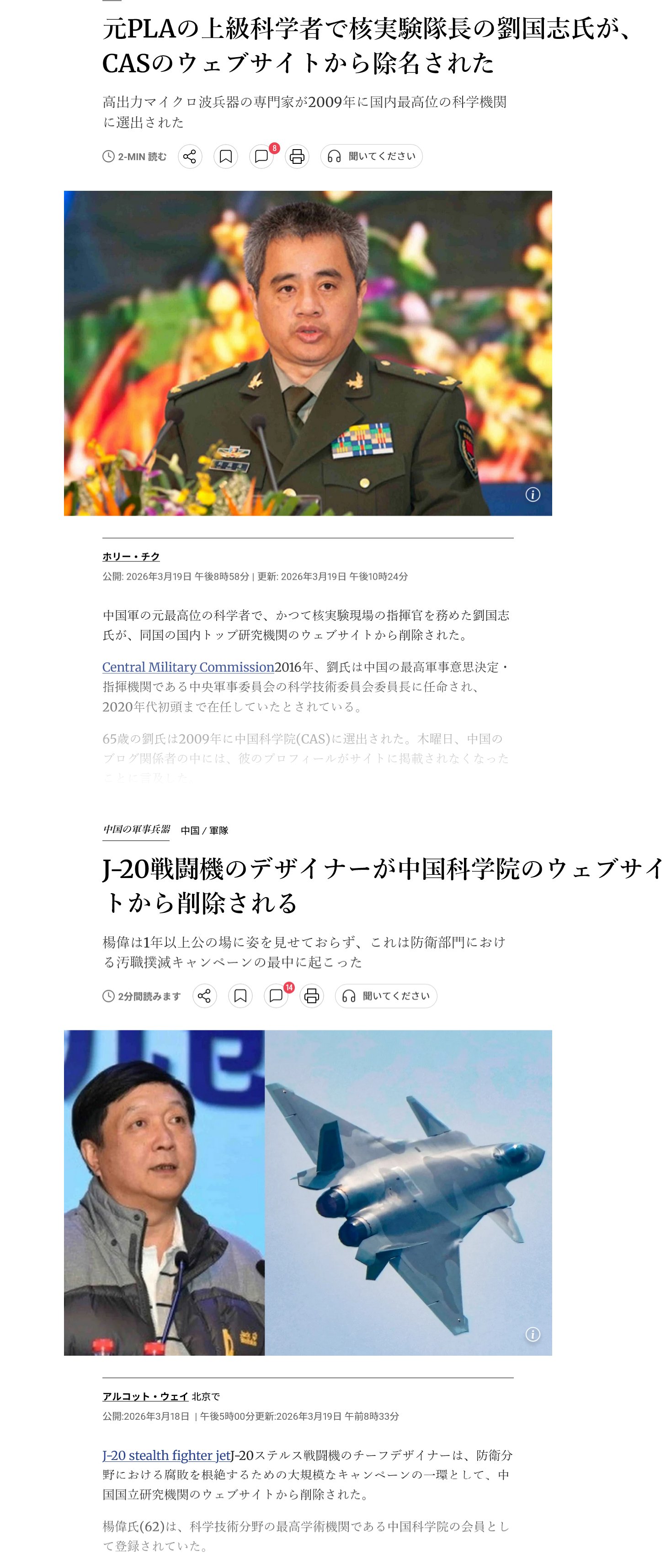| … | 463無念Nameとしあき26/04/04(土)07:03:15No.1398417720そうだねx3台湾国営通信社のCNAの報道だと粛清(建前は汚職摘発)は軍の高官だけでなくJ-20主任開発者など相当数の中国の兵器研究者が名簿から削除されたらしい |