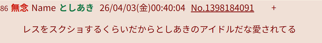 | … | 81無念Nameとしあき26/04/04(土)01:56:46No.1398402823+同一スレ豚のソシャゲ粘着スレ |