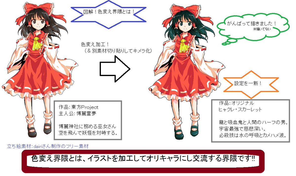| … | 78無念Nameとしあき26/04/03(金)23:34:54No.1398380808+東方は二次の方でフリー利用可能な立ち絵素材もあったからそれで色変えの中心みたいな感じになってた気がするわよ |