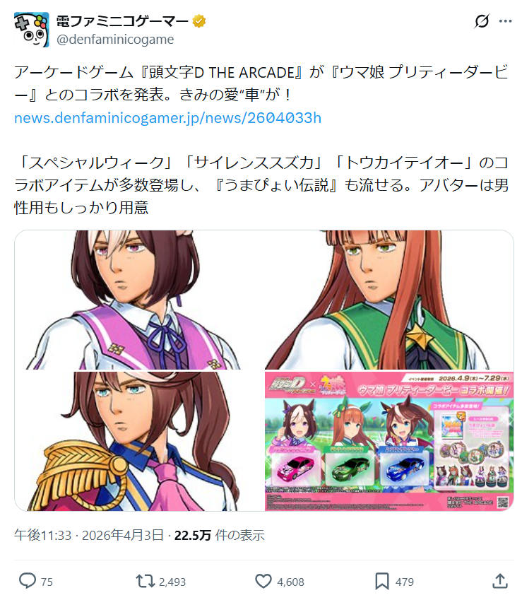 | … | 4無念Nameとしあき26/04/03(金)23:09:00No.1398374917そうだねx1イニDはウマ娘もいいけど下り最速のステラソラやブルアカともコラボしてくれよ |