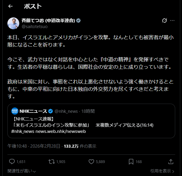 | … | 938無念Nameとしあき26/04/04(土)02:36:04No.1398405837+>単にイランは国際的にアピールしたいから |