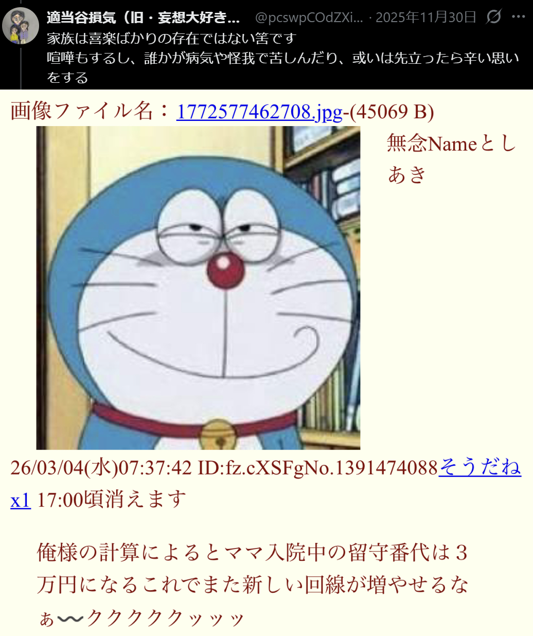| … | 7無念Nameとしあき26/04/03(金)23:37:24No.1398381372+ドラえもん尊厳破壊罪で死刑 |