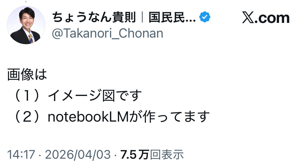 | … | 234無念Nameとしあき26/04/04(土)08:31:46No.1398426522+AIでマニュフェストや資料作ってやらかす党が出てくるとは思ったけど |