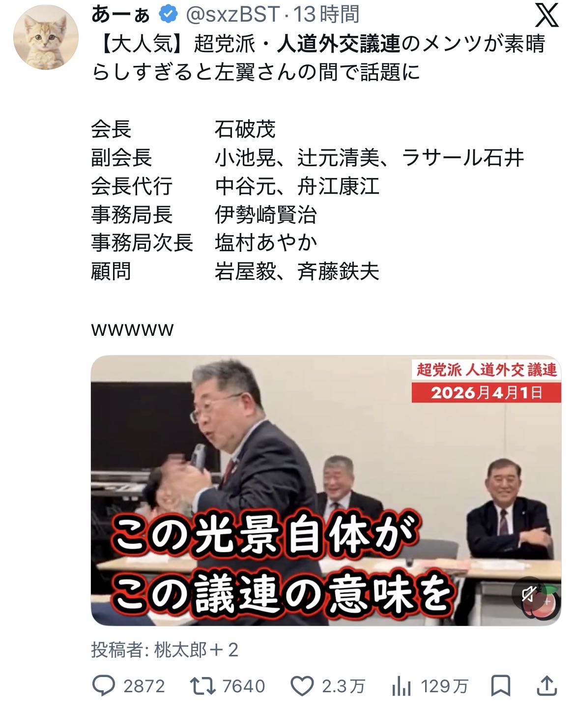 | … | 214無念Nameとしあき26/04/04(土)12:41:52No.1398467749+>首相経験者が勝手に外交をしてはいけない |