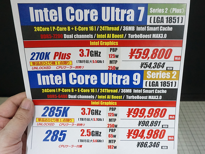 「Core Ultra 7 270K Plus」が国内発売