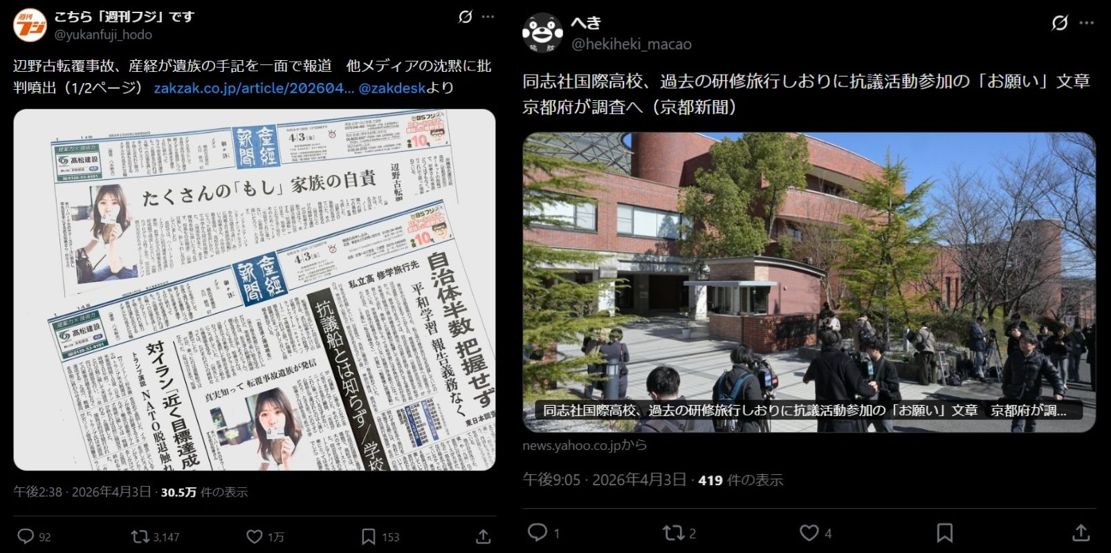 | … | 145無念Nameとしあき26/04/04(土)19:18:18No.1398557691+同志社側もなにもつっこんでないし |