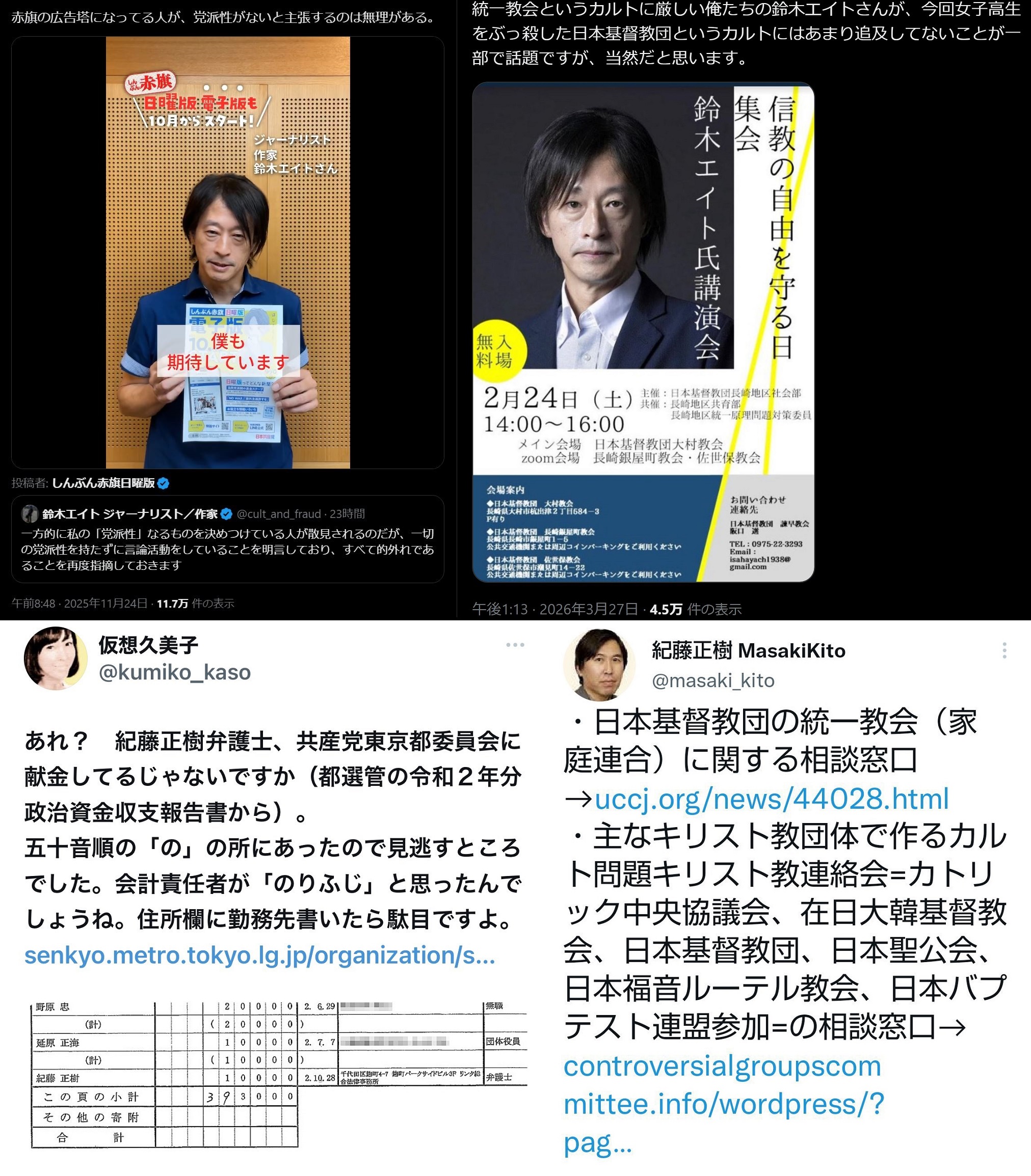 | … | 131無念Nameとしあき26/04/04(土)18:54:26No.1398551627+ 1775296466067.jpg-(1126396 B) >カルト教団に詳しい弁護士とジャーナリスト軍団はそろそろ動いた? |