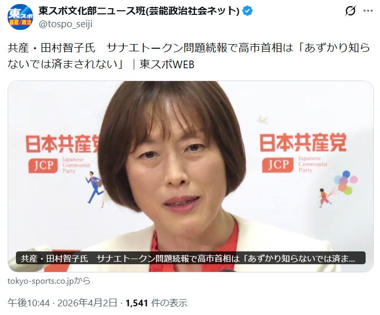 | … | 44無念Nameとしあき26/04/04(土)17:41:13No.1398532335そうだねx2>自分に矛先が向くとダンマリな共産党であった |