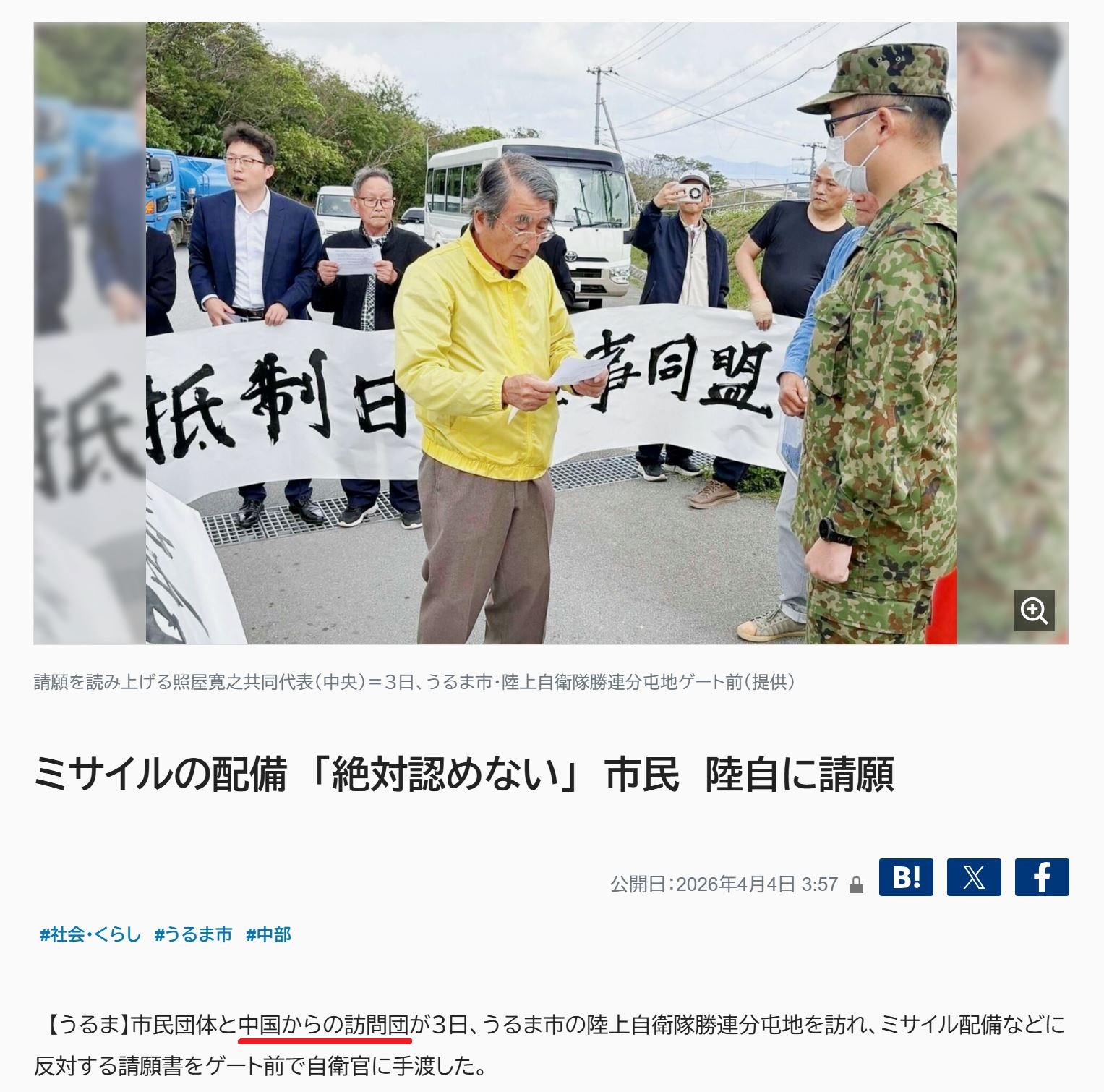 | … | 15無念Nameとしあき26/04/04(土)17:09:39No.1398525047そうだねx3>会見後数日で再び基地への抗議活動を再開する面の皮の厚さ |