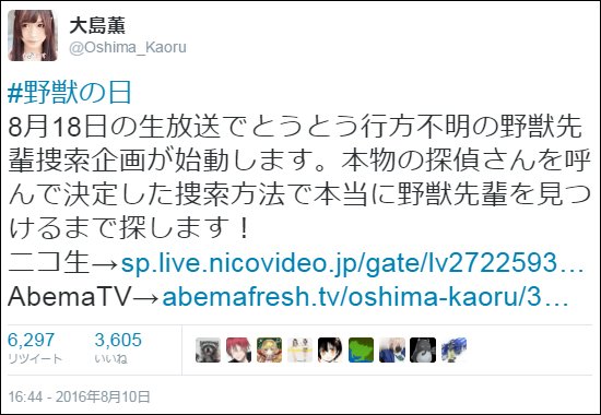 | … | 17無念Nameとしあき26/04/04(土)18:31:24No.1398545623+どこにでも居るがどこにも居ないそれが野獣先輩 |