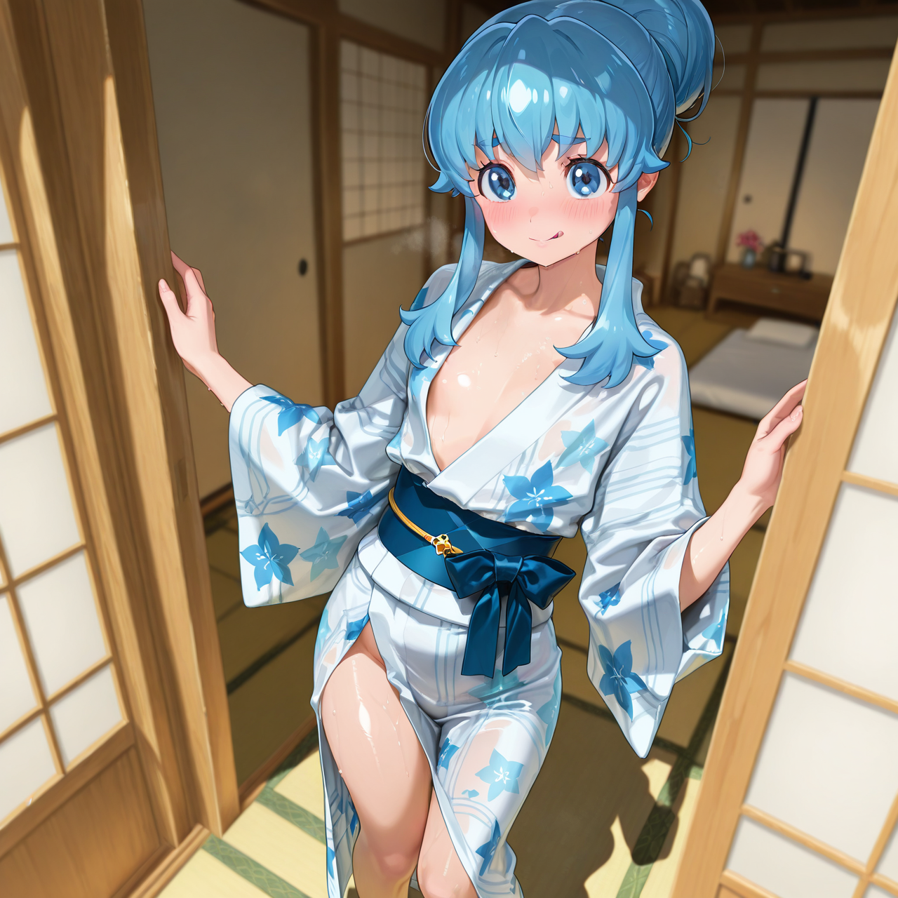 | … | 57無念Nameとしあき26/04/04(土)20:00:28 ID:Y/k8M9MwNo.1398568945そうだねx2 1775300428315.png-(2588867 B) looking at viewer, completely nude, nipples, ass focus, spread legs, partially_visible_vulva, hands on own thighs, bandaid on pussy, simple background, dutch angle, |
