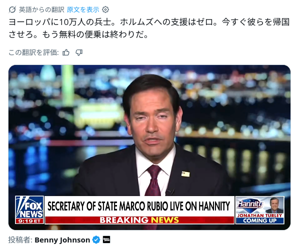 | … | 35無念Nameとしあき26/04/05(日)21:41:42No.1398867116+ 1775392902471.jpg-(323504 B) >ファッキンヨーロッパのファッキンNATO共、 |