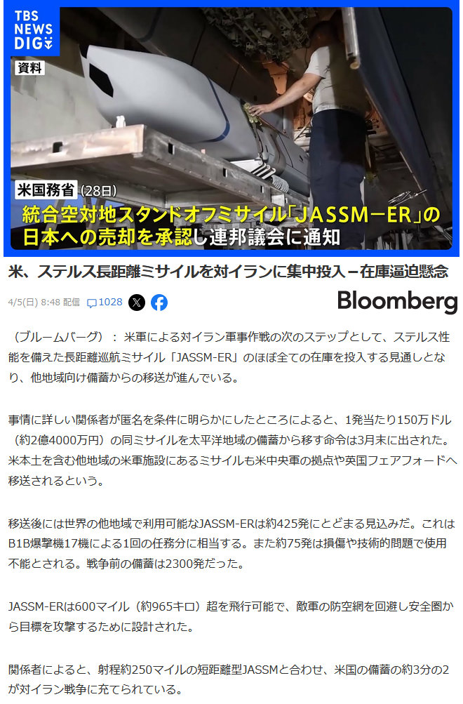 | … | 913無念Nameとしあき26/04/05(日)23:44:02No.1398900511そうだねx1>最初の16日間で各種ミサイルを合計1万1294発も使用したが |