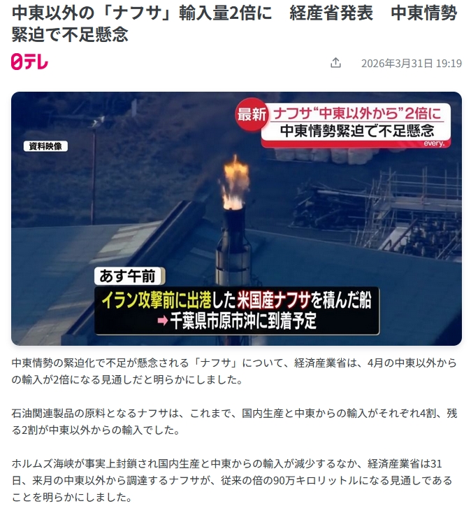 | … | 953無念Nameとしあき26/04/05(日)23:47:56No.1398901444+>備蓄が他よりあるのは高市関係ないけどな |