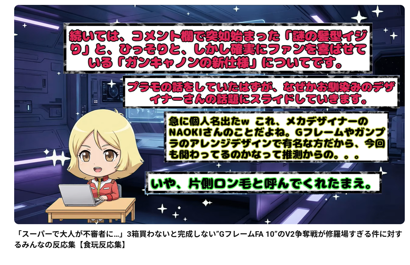 | … | 61無念Nameとしあき26/04/06(月)00:32:10No.1398909849+ 1775403130403.png-(1469042 B) 最近のガンプラみんなの反応集で、話題が逸れてカリスマの流れになったのが3件あるとか大人気過ぎるよね。 |