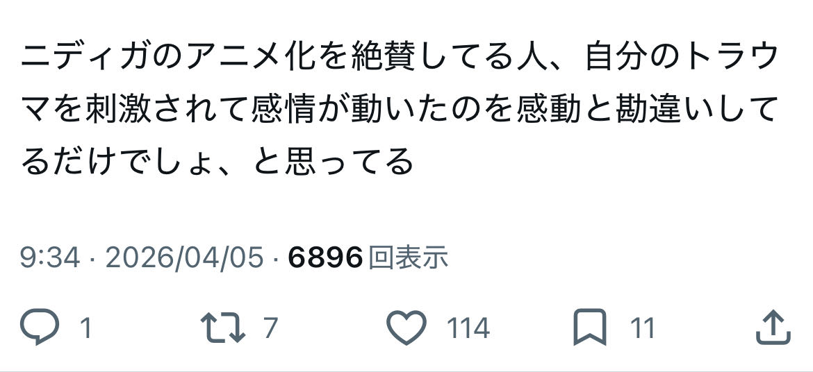 | … | 65無念Nameとしあき26/04/05(日)23:27:28No.1398896604そうだねx3>ニディアニ見たけど何が面白いのこれ |